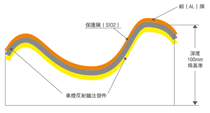 制膜種類:車燈反射鋁膜一次自動完成鍍保護膜重合工藝